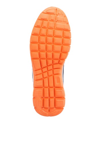 Axel 的撞色男性跑步運動鞋,有網眼及布料異材質拼接設計,配以熒光橘鞋帶及鞋底設計,是帥氣搶眼的運動鞋款。